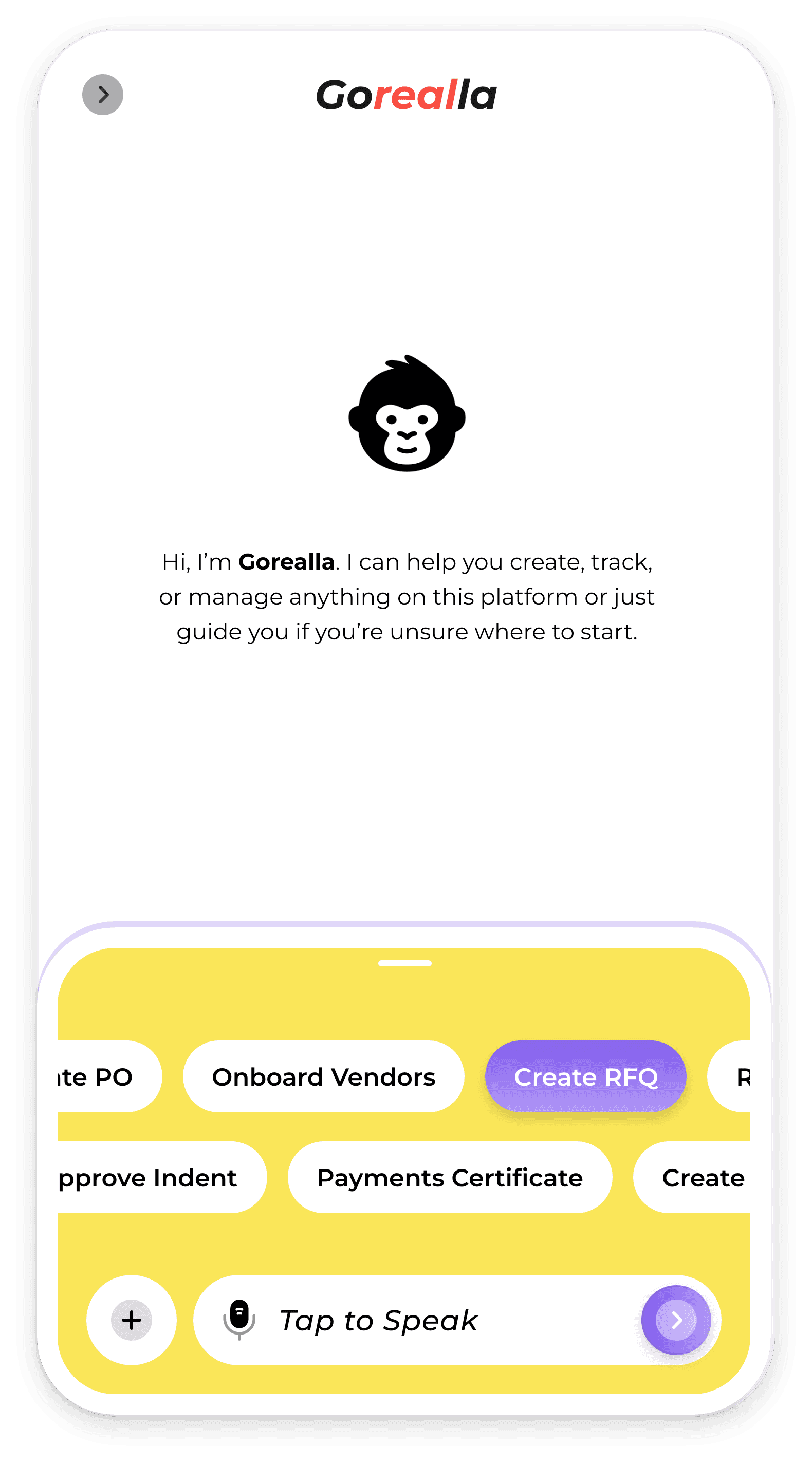 All operations in Gorealla start as conversations, voice or chat, not forms.