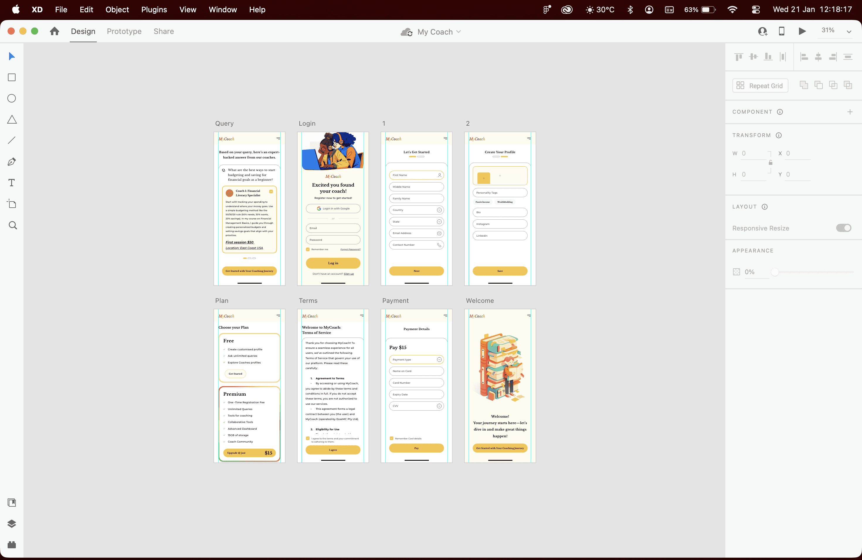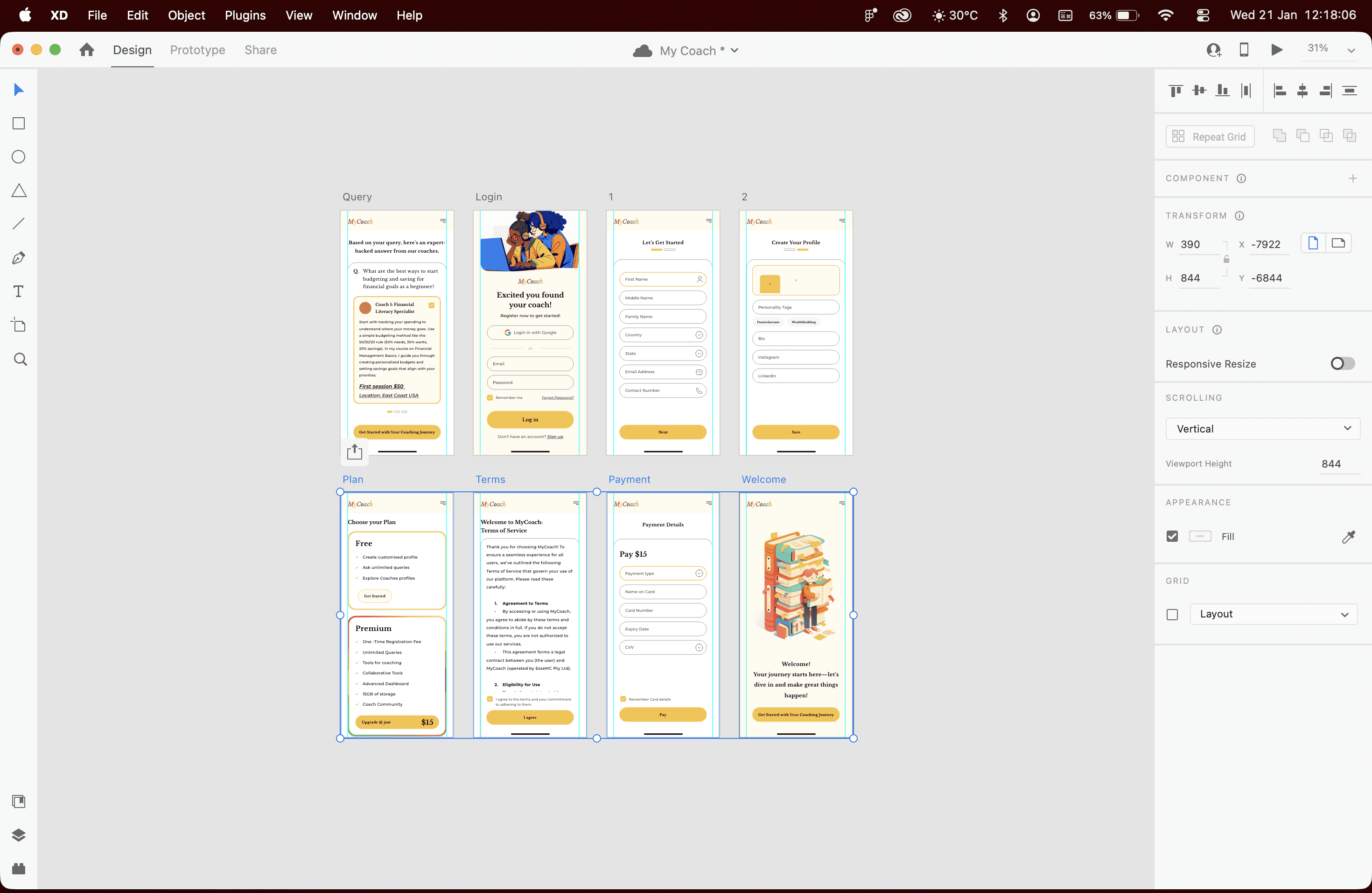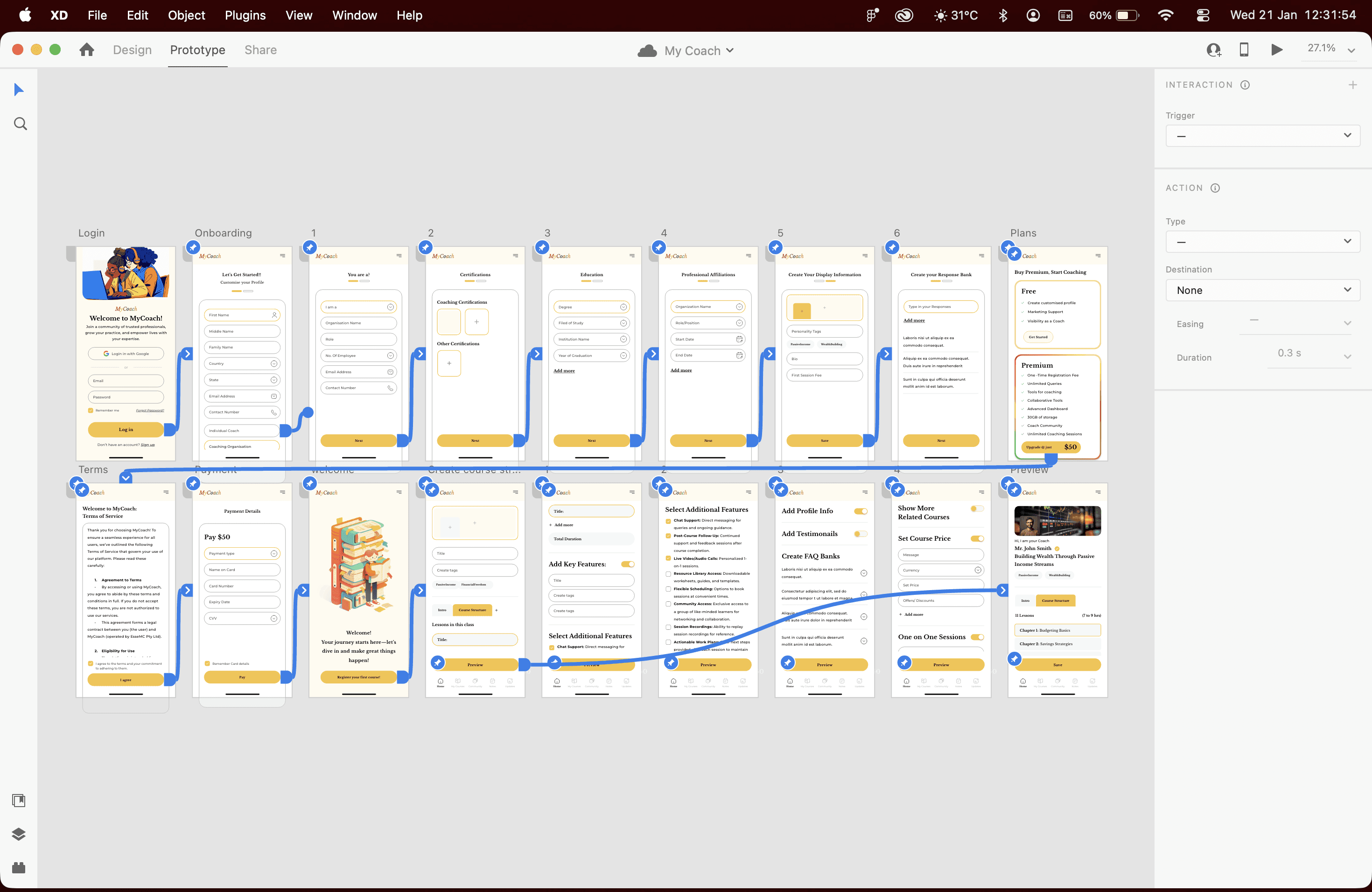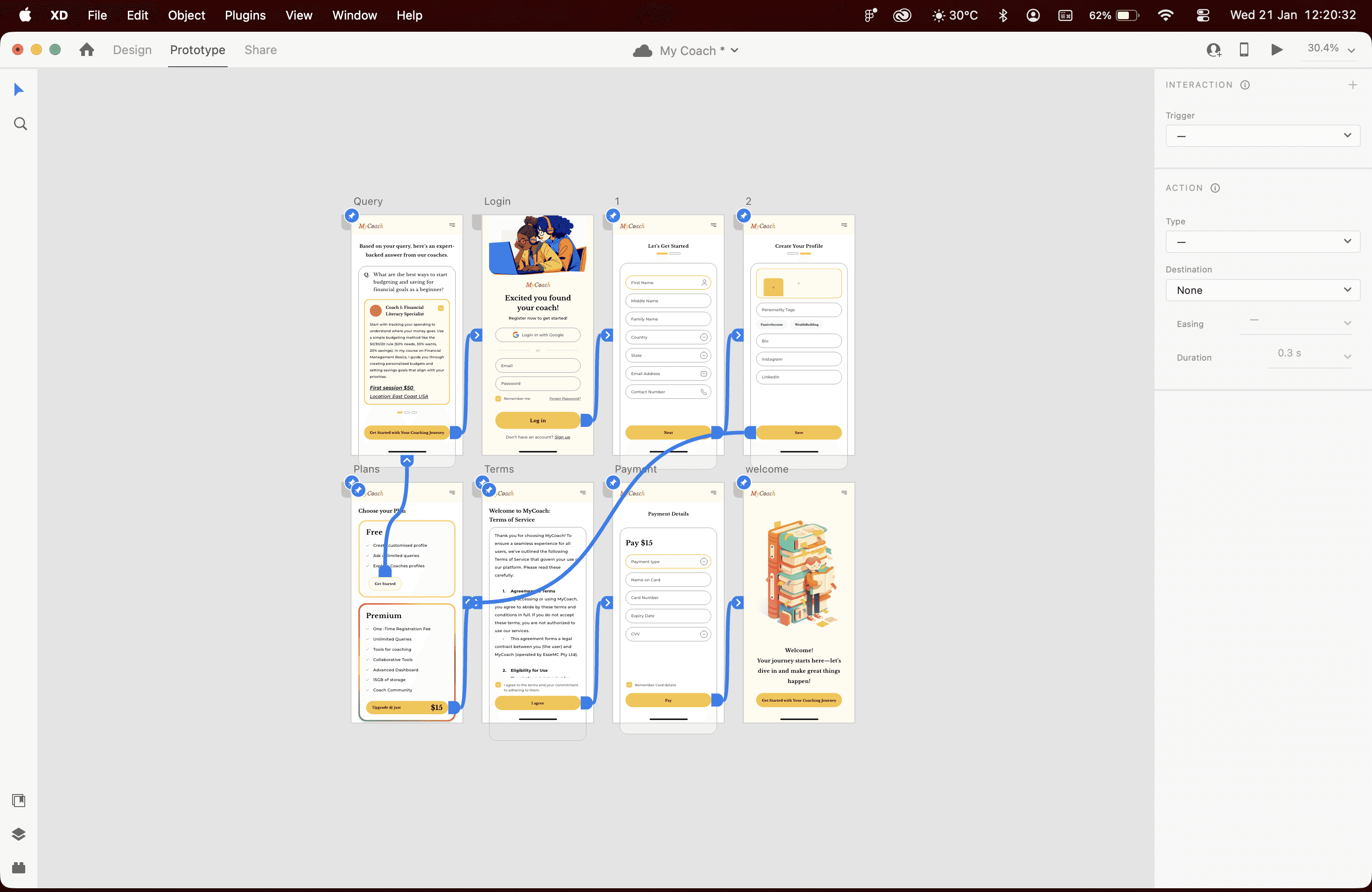 Designed complete user flows for onboarding, browsing, session booking, and scheduling