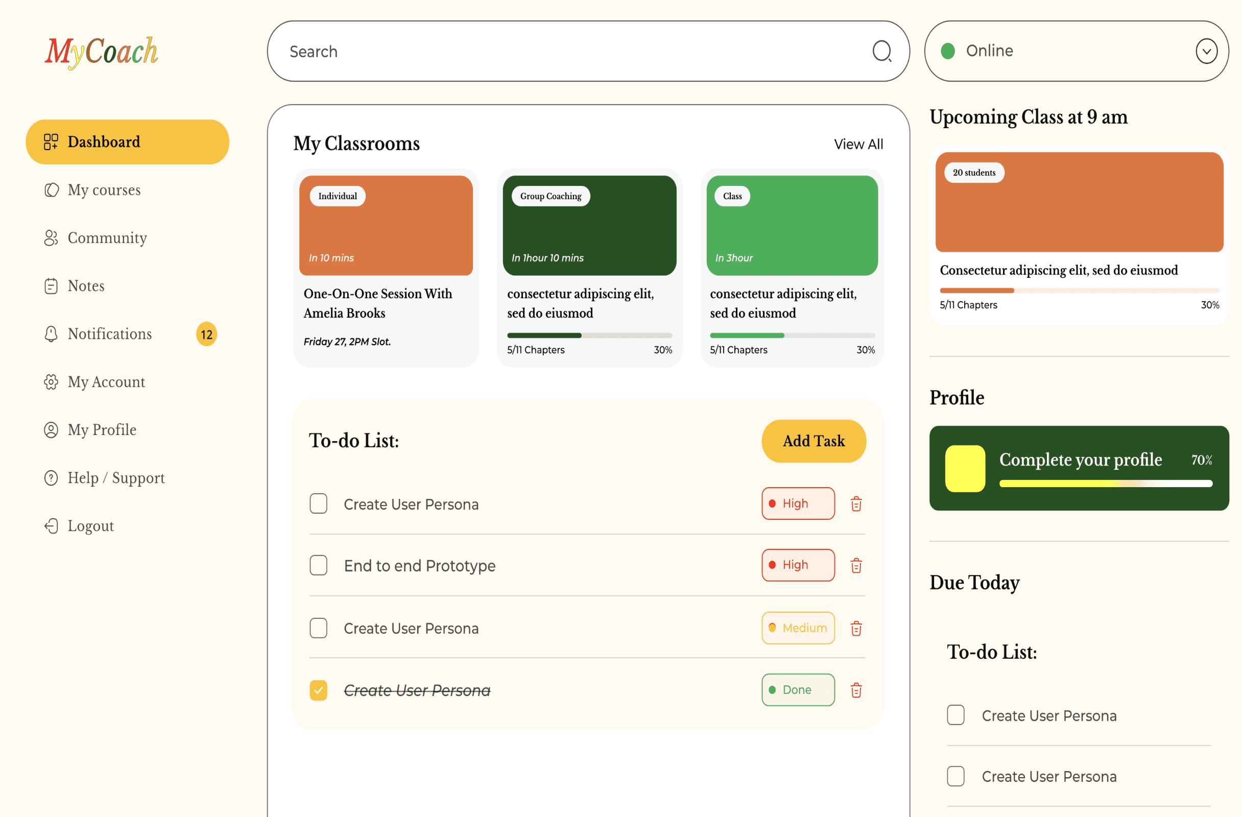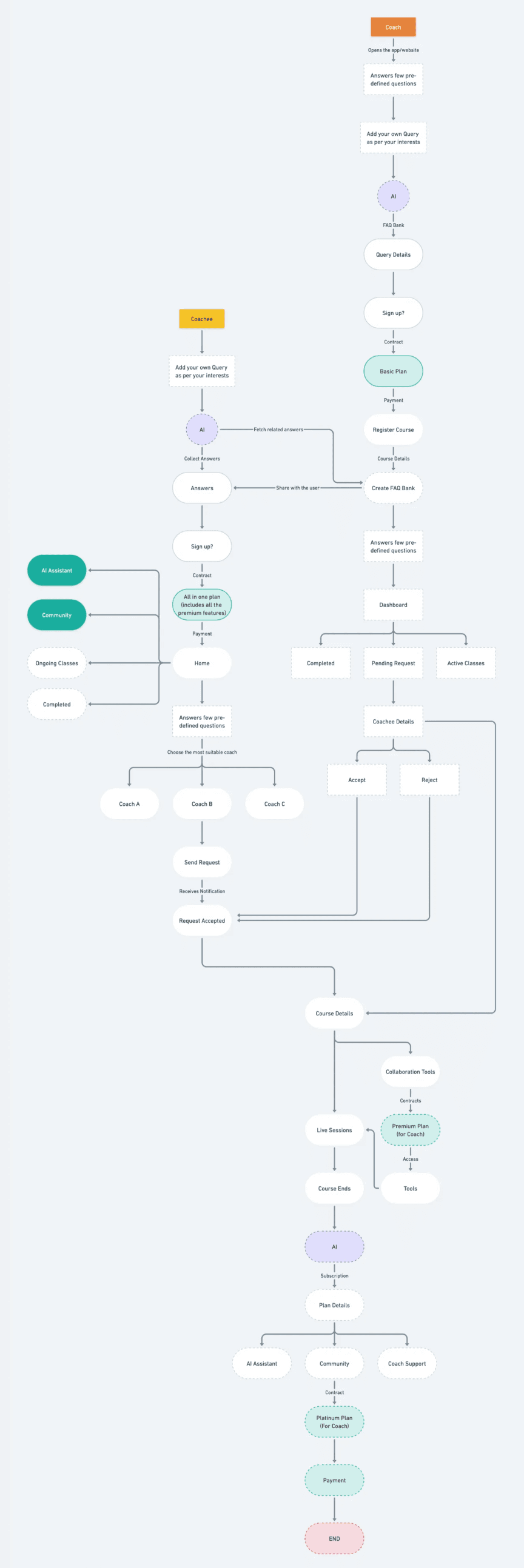Conducted user research and requirement mapping across learner, coach, and admin roles