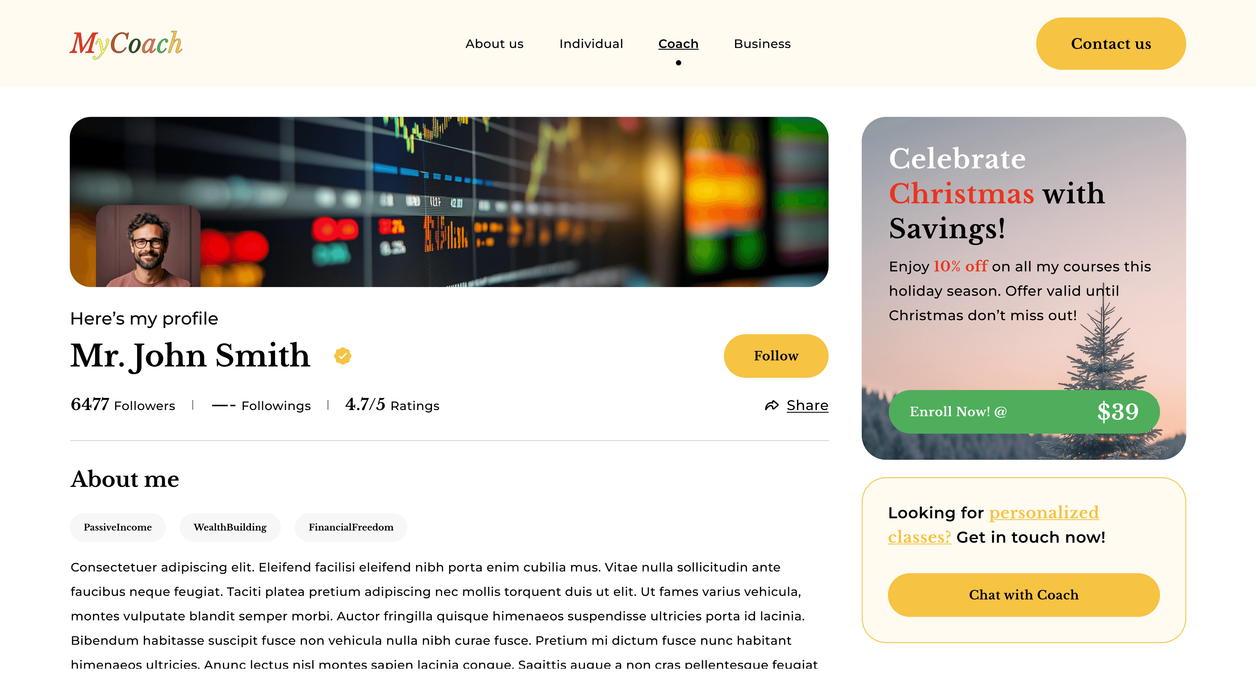 Coaches list subjects and services they offer, define availability, and set expectations. This ensures learner requirements and coach offerings are aligned before sessions begin.