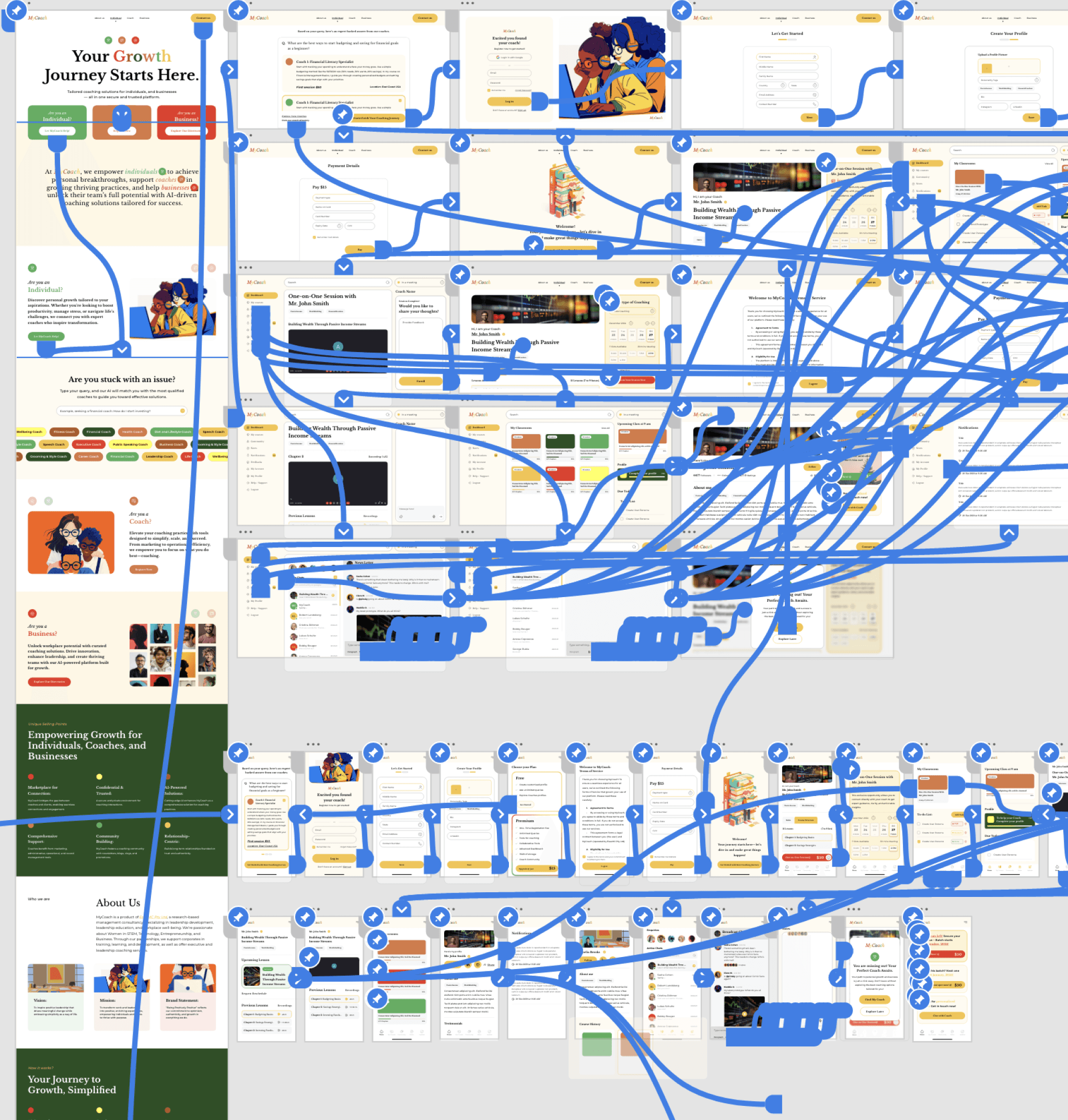 Actions taken by one role directly affected others. The challenge was to design clear handoffs and connections between learners, coaches, and businesses without introducing confusion or excessive screens.